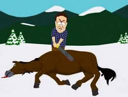 Posted: May 31, 2016 Filed under: Uncategorized | Tags: beat a dead horse, expressions, humor, language, malaphor, malaphors, words, you can lead a horse to water but you can't make it drink Leave a commentThis is another in a series of “Maraphors”, a punny term coined by Ray Johnston describing malaphors involving horses, which it turns out is quite a few (type in horse in the search field on the website and you will see). This nice mash up of “you can lead a horse to water, but you can’t make him drink” (even favorable circumstances won’t force someone to do something one doesn’t want to) and “beating a dead horse” (a particular request is already resolved and any attempt to continue is futile) was uttered by mistake by malaphor follower azrielle. Thanks Azrielle for passing this one along!